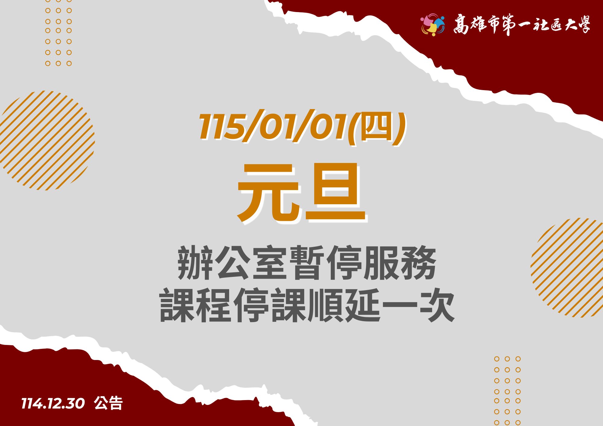 1/1(四)元旦,辦公室暫停服務