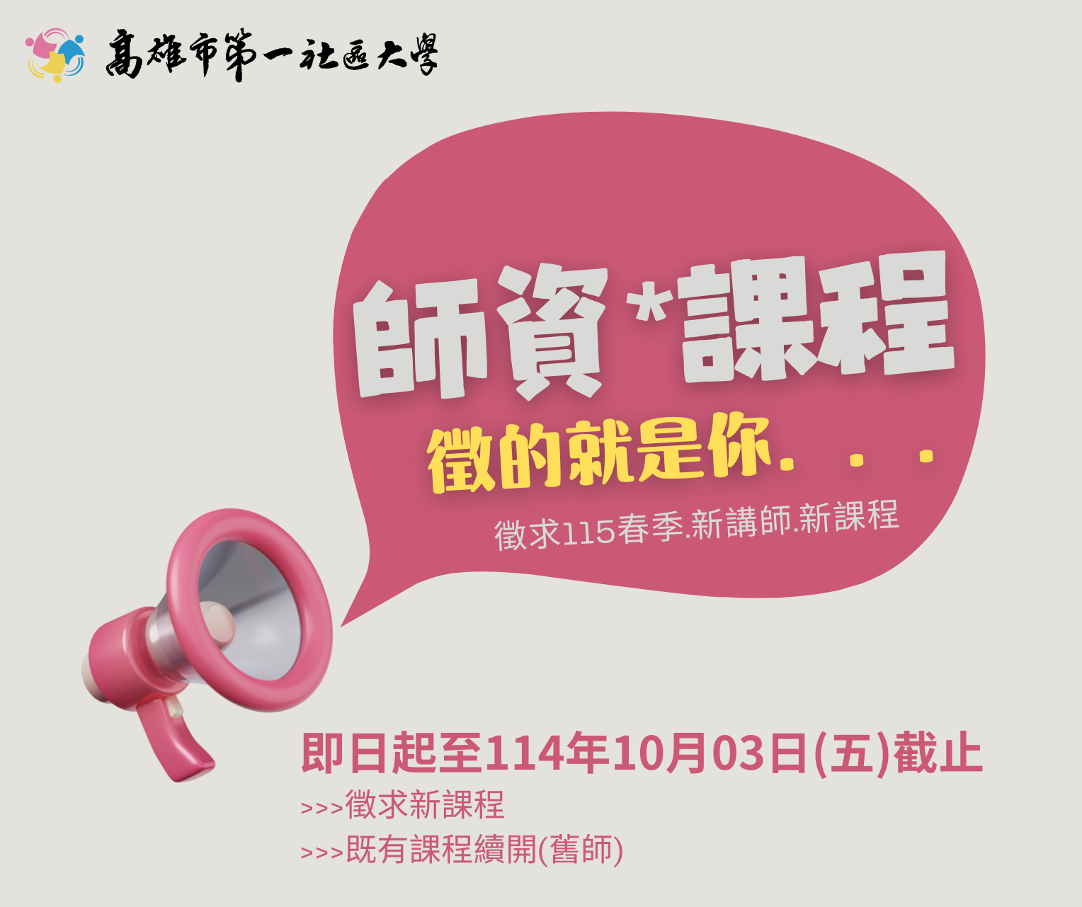 如果您對教育懷抱理想,期待透過教學促進社會對話與改變,歡迎加入第一社大,一起打造更多元的學習場域!